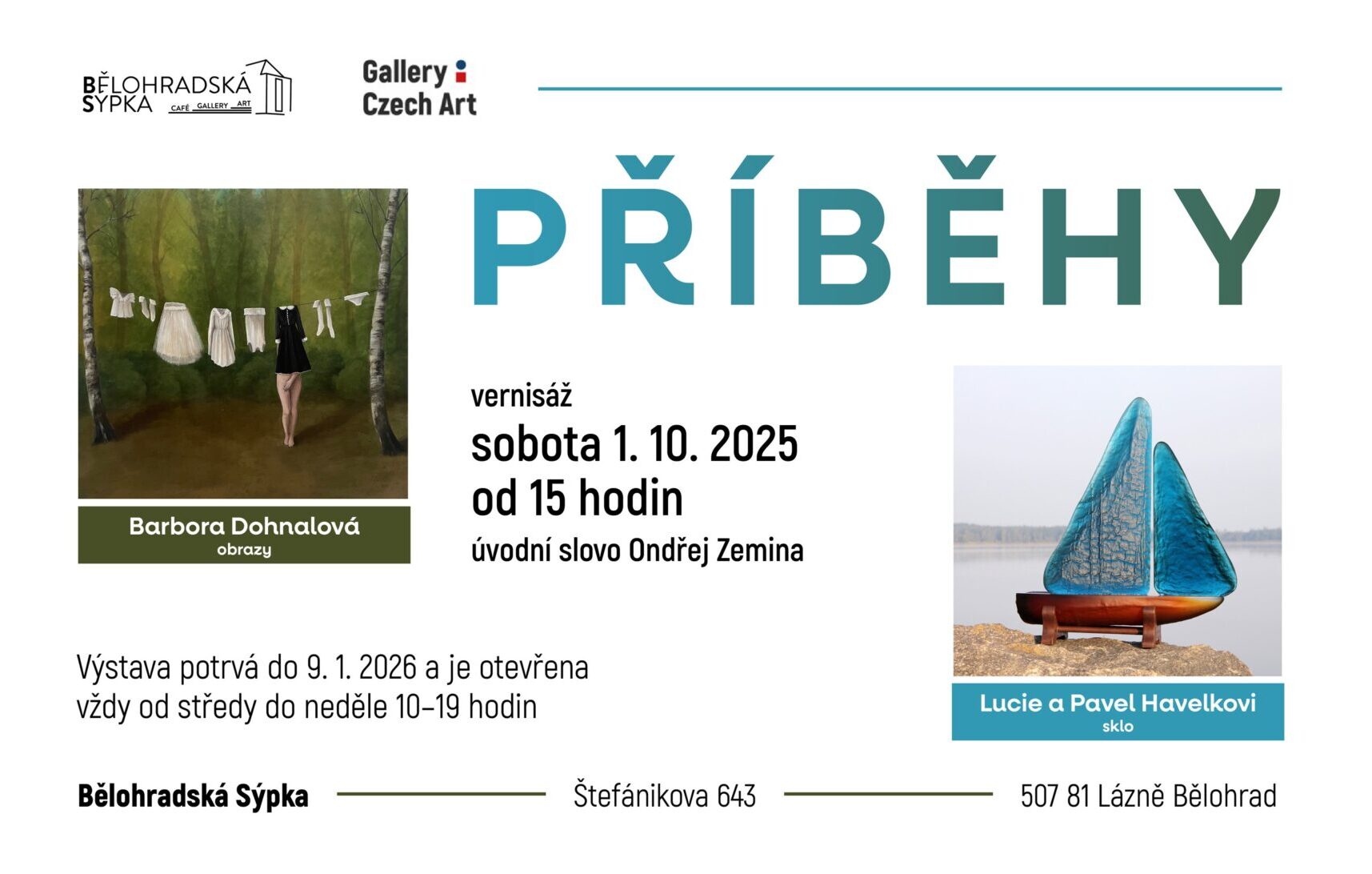 Společné výstavy obrazů malířky Barbory Dohnalové a skla od Lucie a Pavla Havelkových. Pavel a...