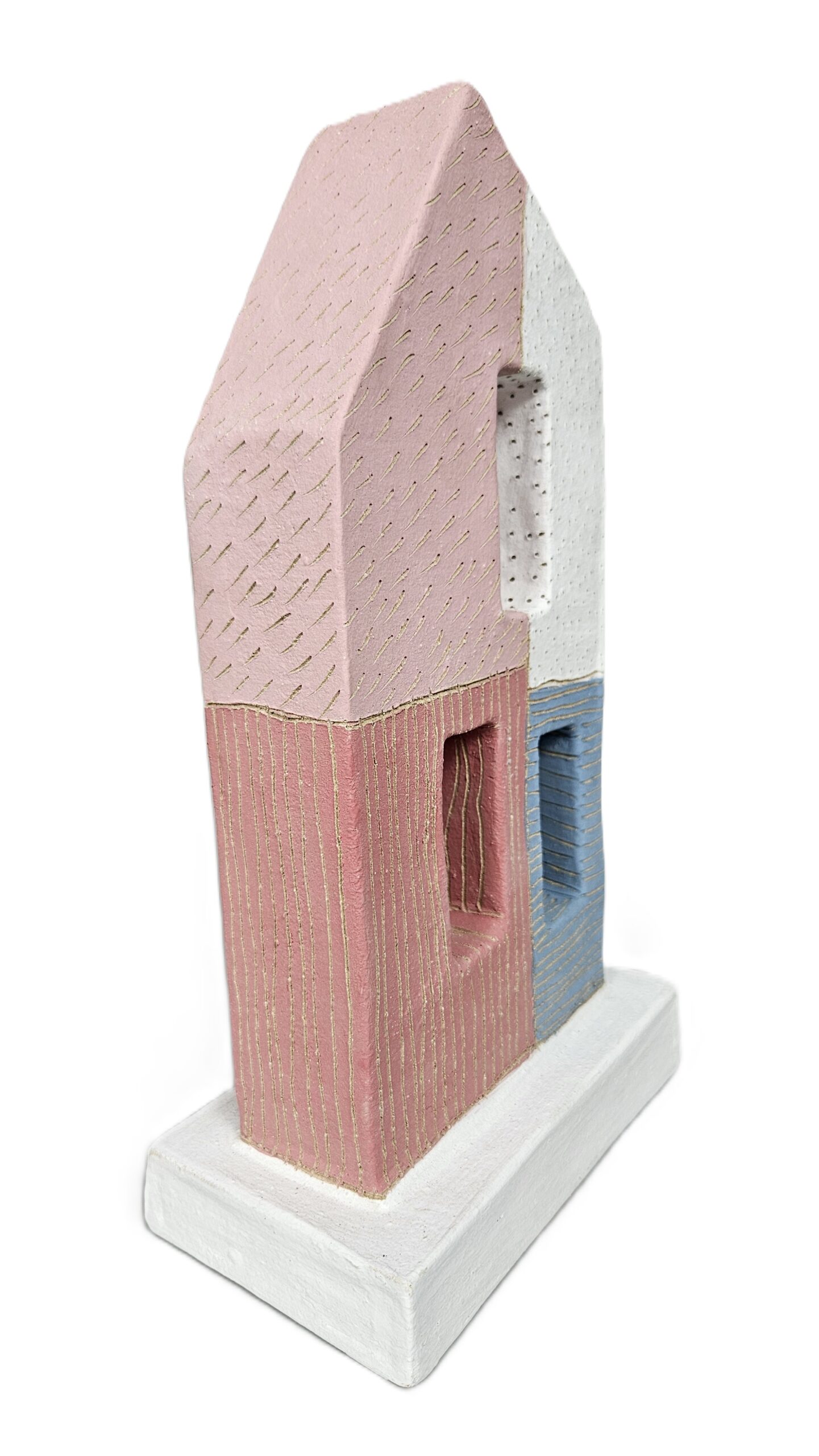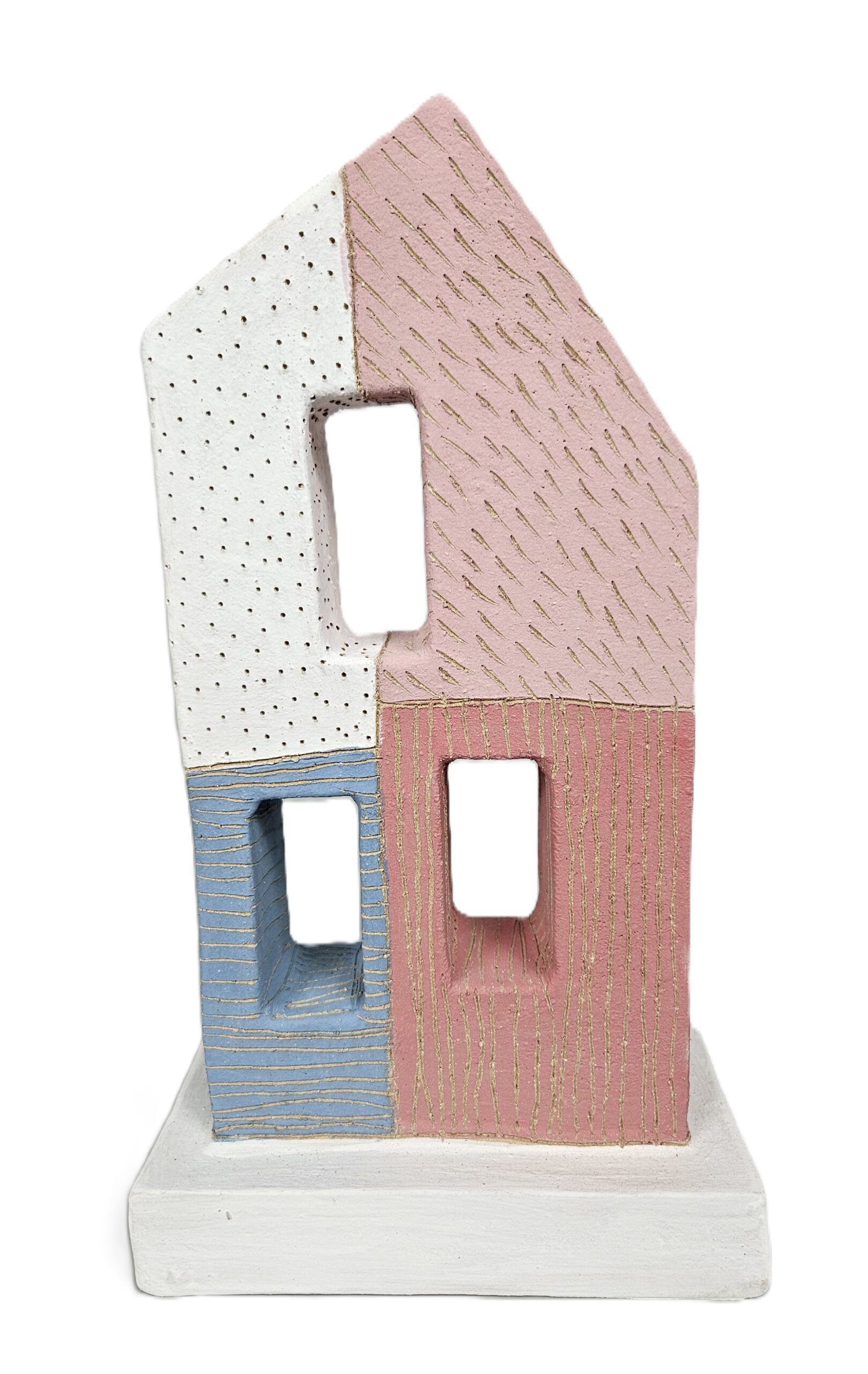 Plastika z keramiky s názvem „Domek“ je ruční tvorba výtvarníka Karla Frantela. Keramickou plastiku je možné umístit do vnitřních i vnějších prostor. Jde o oboustrannou plastiku, která se bude vyjímat zejména v prostoru.