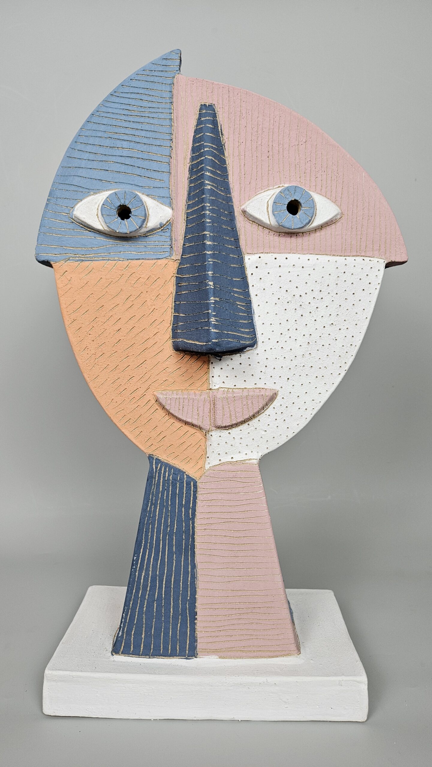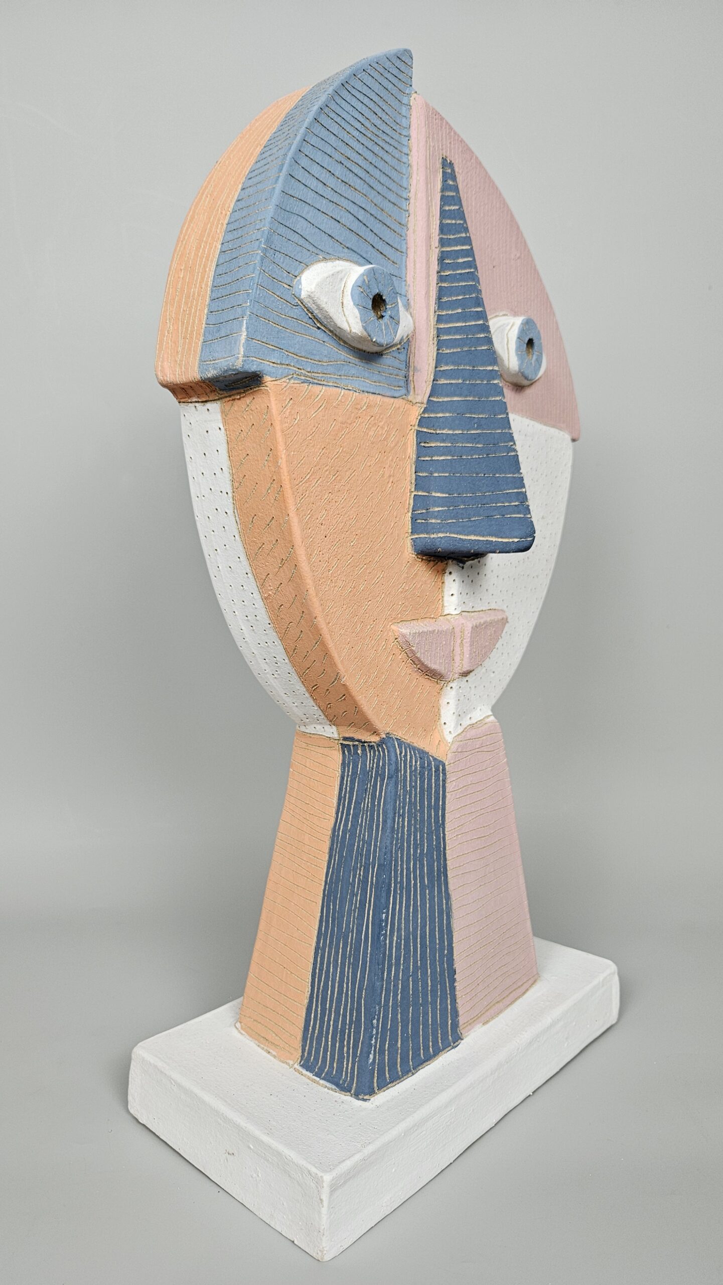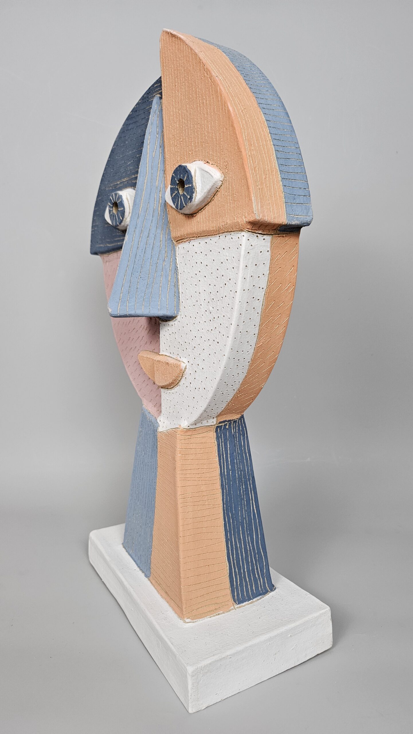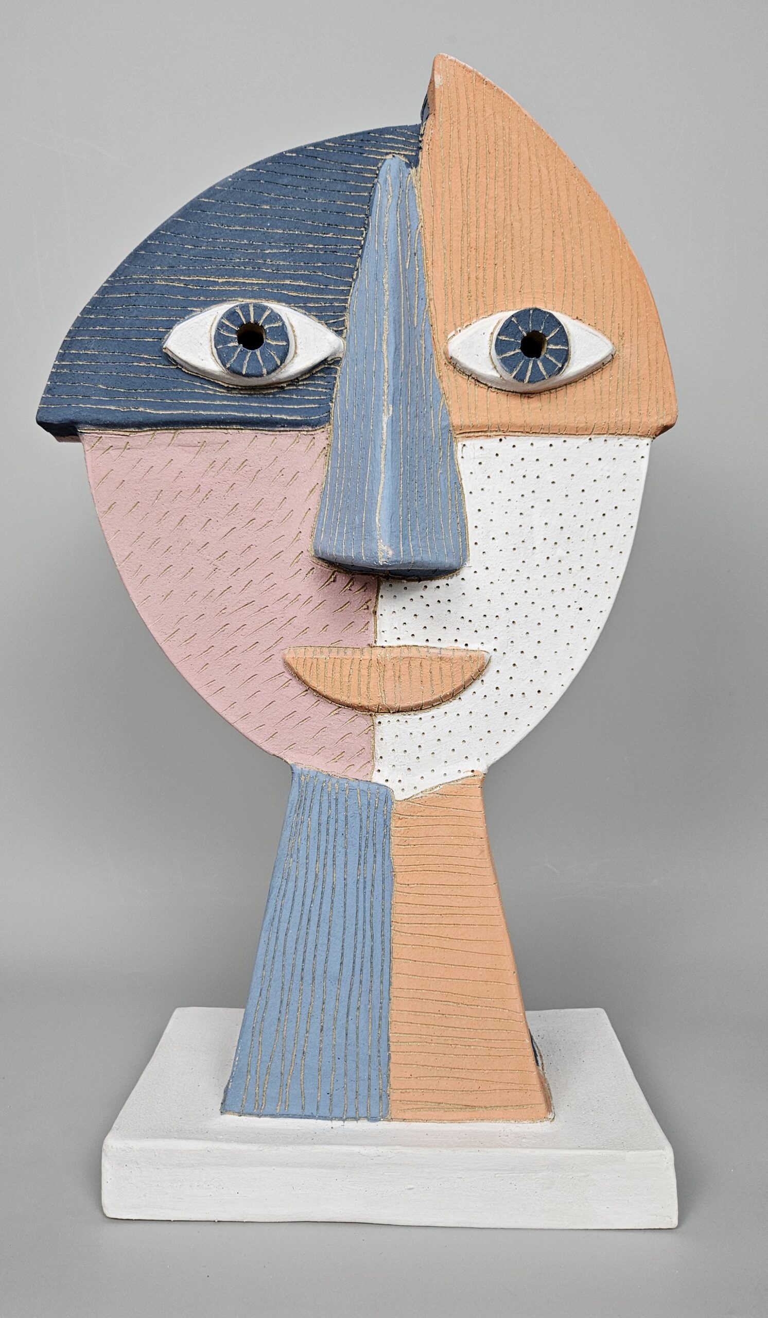 Barevná plastika hlavy může tvořit ojedinělou dominantu v prostoru. Plastika z keramiky je velmi oblíbeným doplňkem, který dodá jedinečnost interiéru.