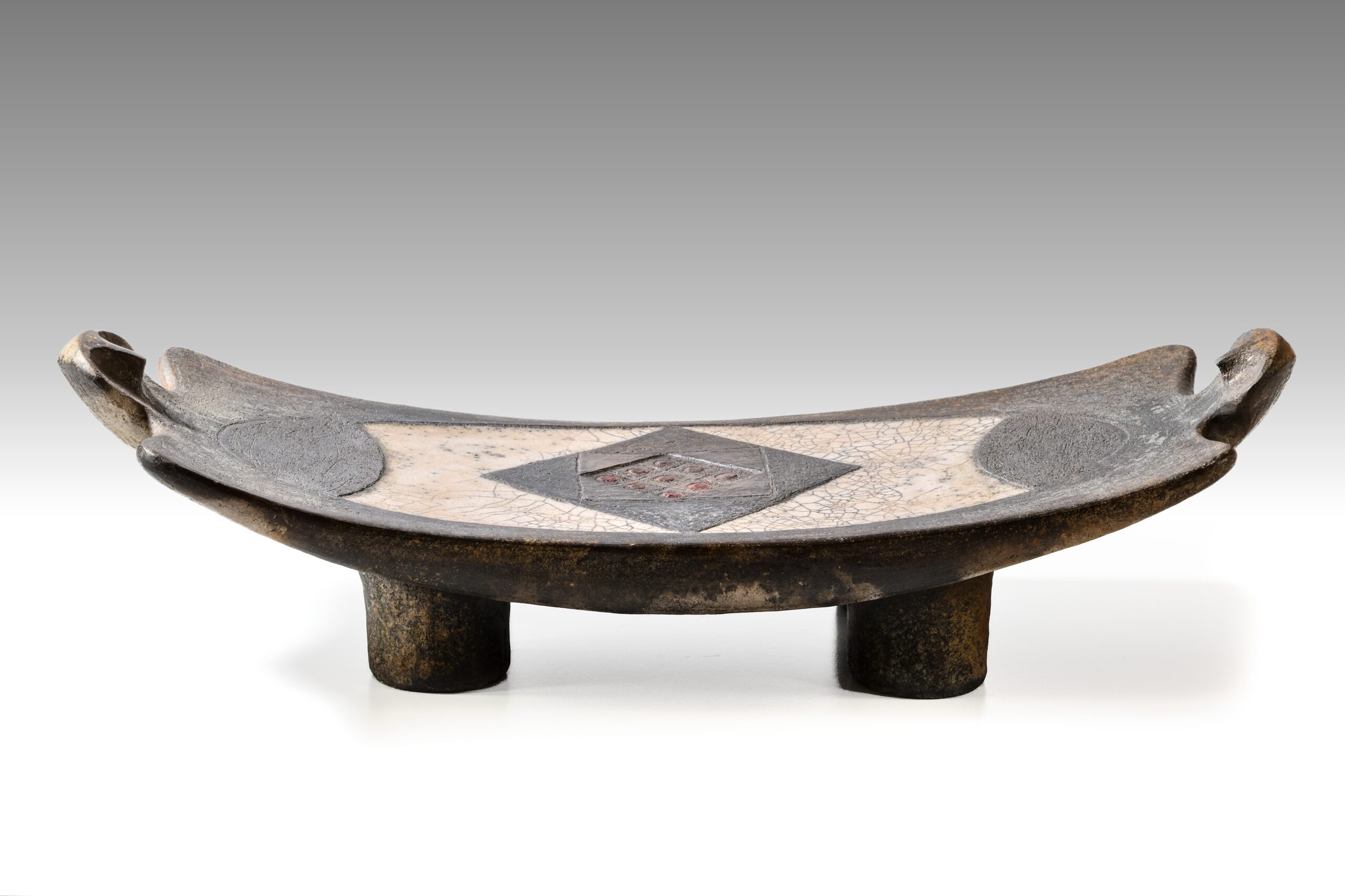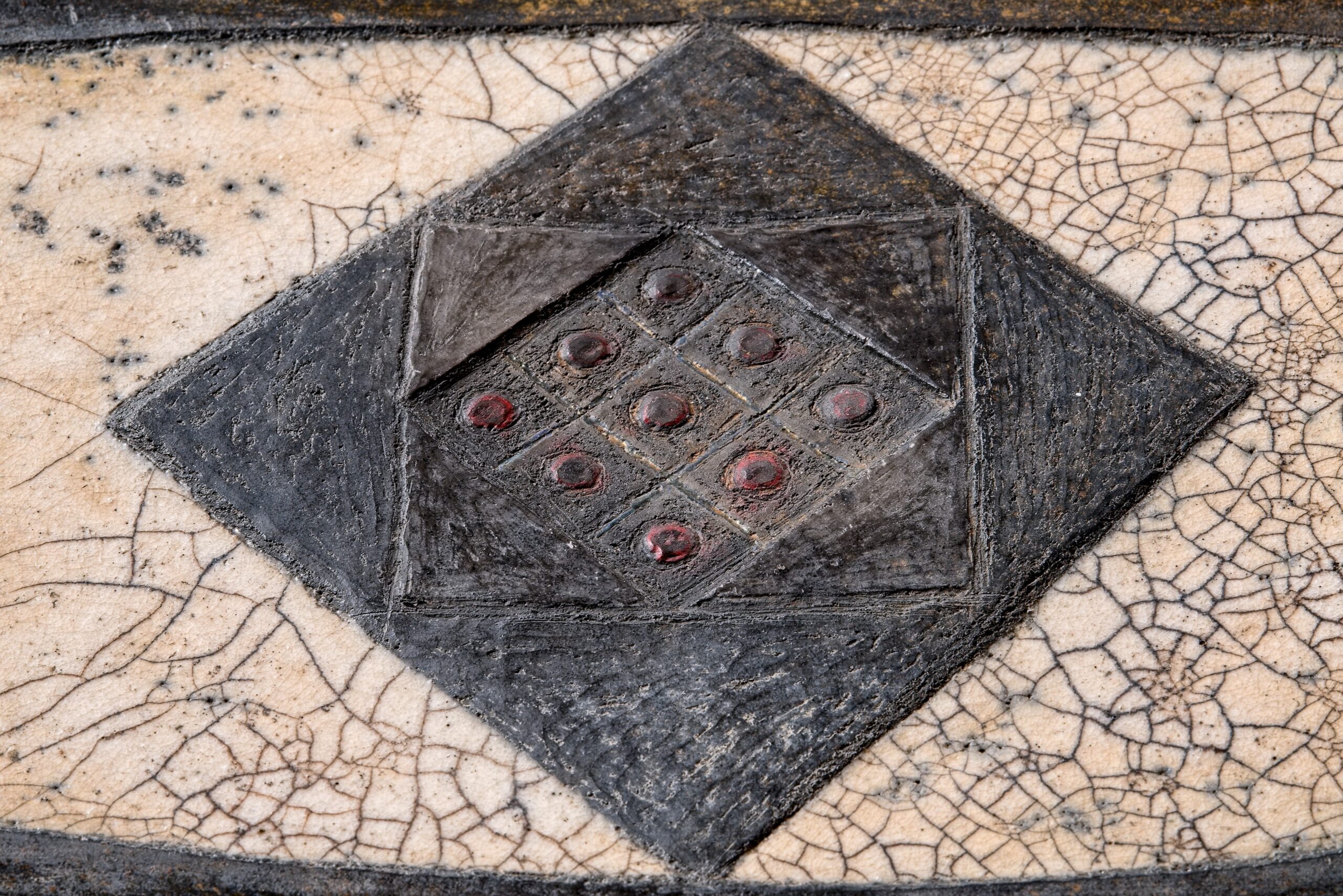Keramická plastika je zhotovena z vysoko-pálené šamotové keramické hlíny technikou raku.