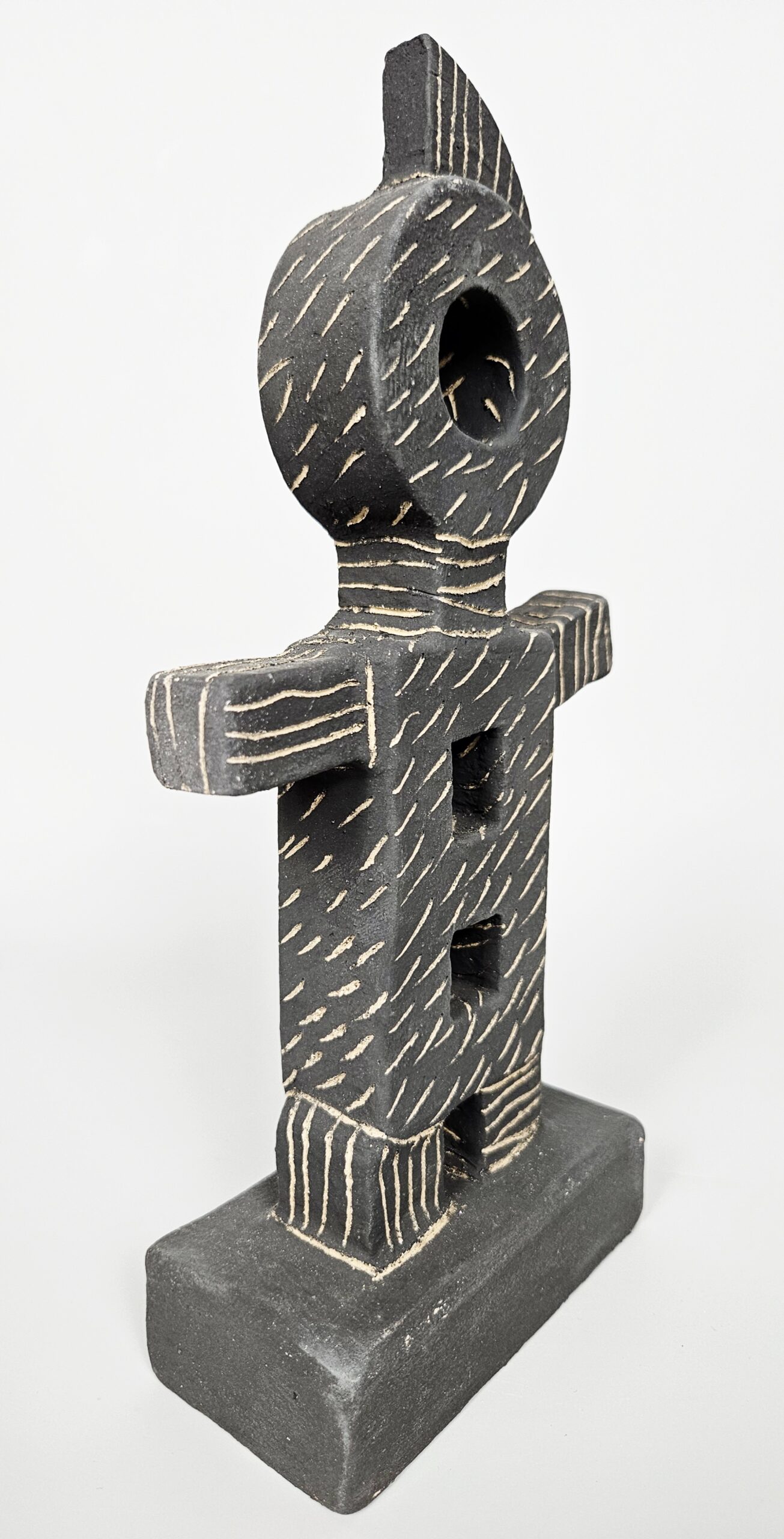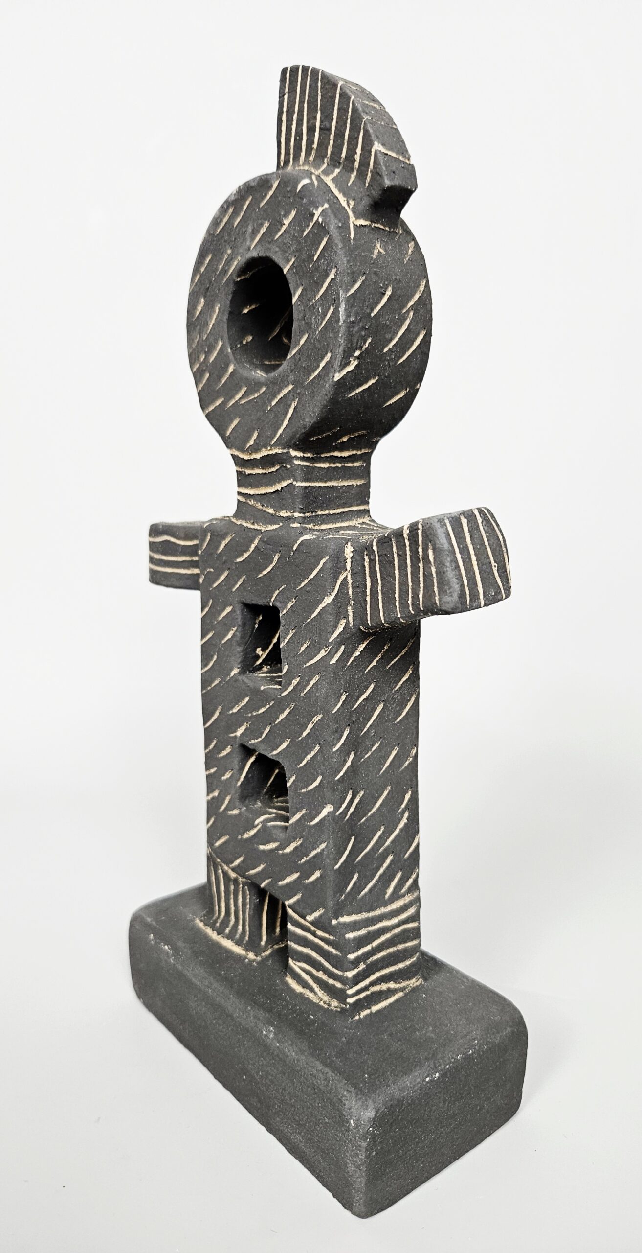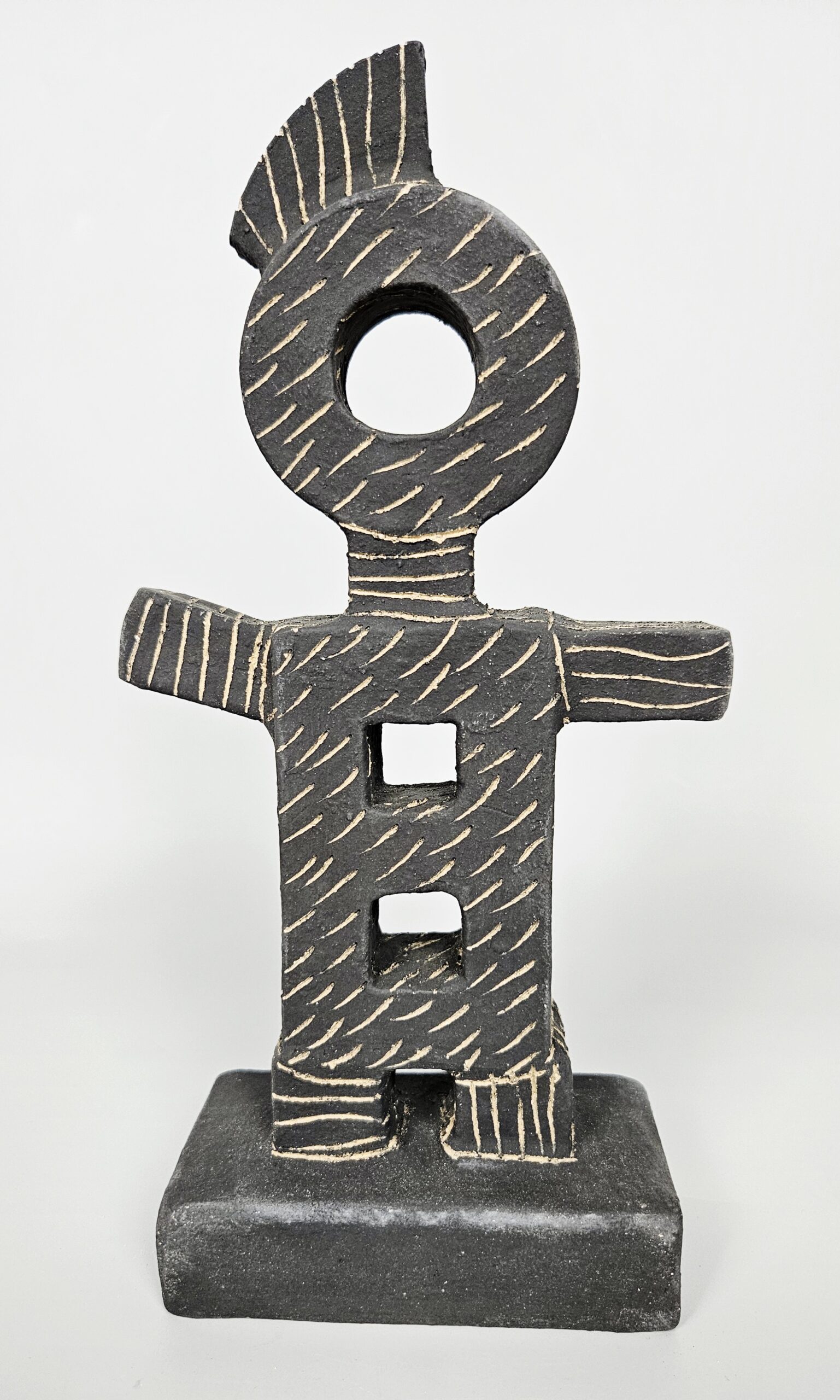 Plastika z keramiky s názvem „Šaman“ je ruční tvorba výtvarníka Karla Frantela a je inspirována skalními kresbami našich předků.