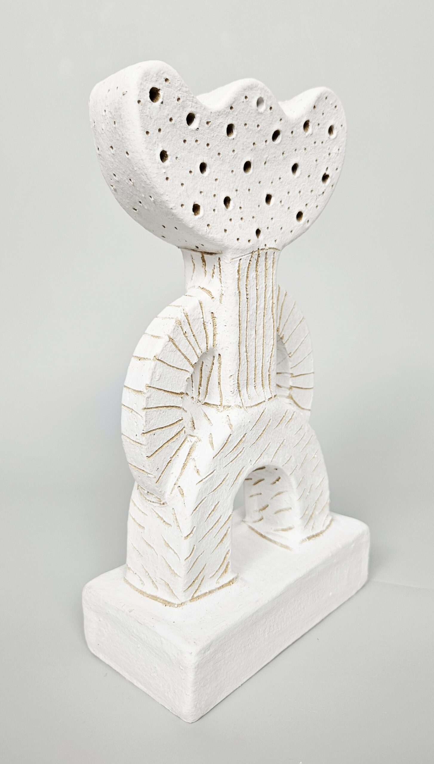 Plastika z keramiky s názvem „Šaman“ je ruční tvorba výtvarníka Karla Frantela a je inspirována skalními kresbami našich předků.