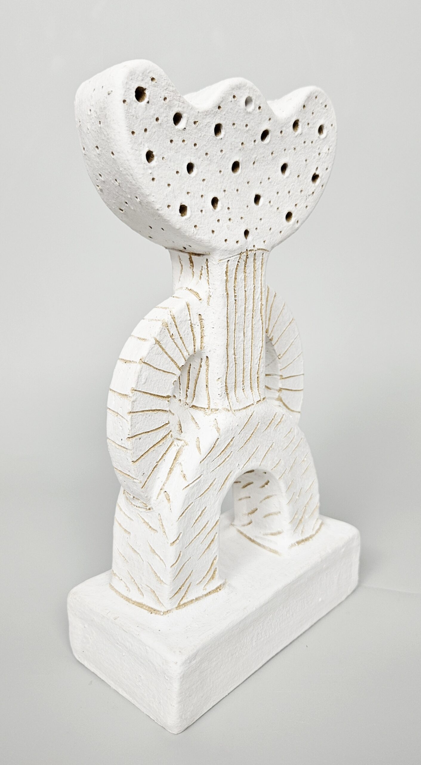 Keramickou plastiku je možné umístit do vnitřních i vnějších prostor. Jde o oboustrannou plastiku, která se bude vyjímat zejména v prostoru.