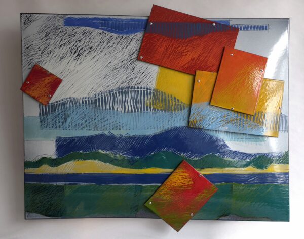 Obraz „Krajina I.“ ze smaltu výtvarnice Kamily Housové Mizerové.