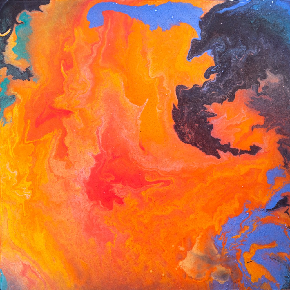 Obraz „Lávová“ ze smaltu výtvarnice Markéty Škopkové.