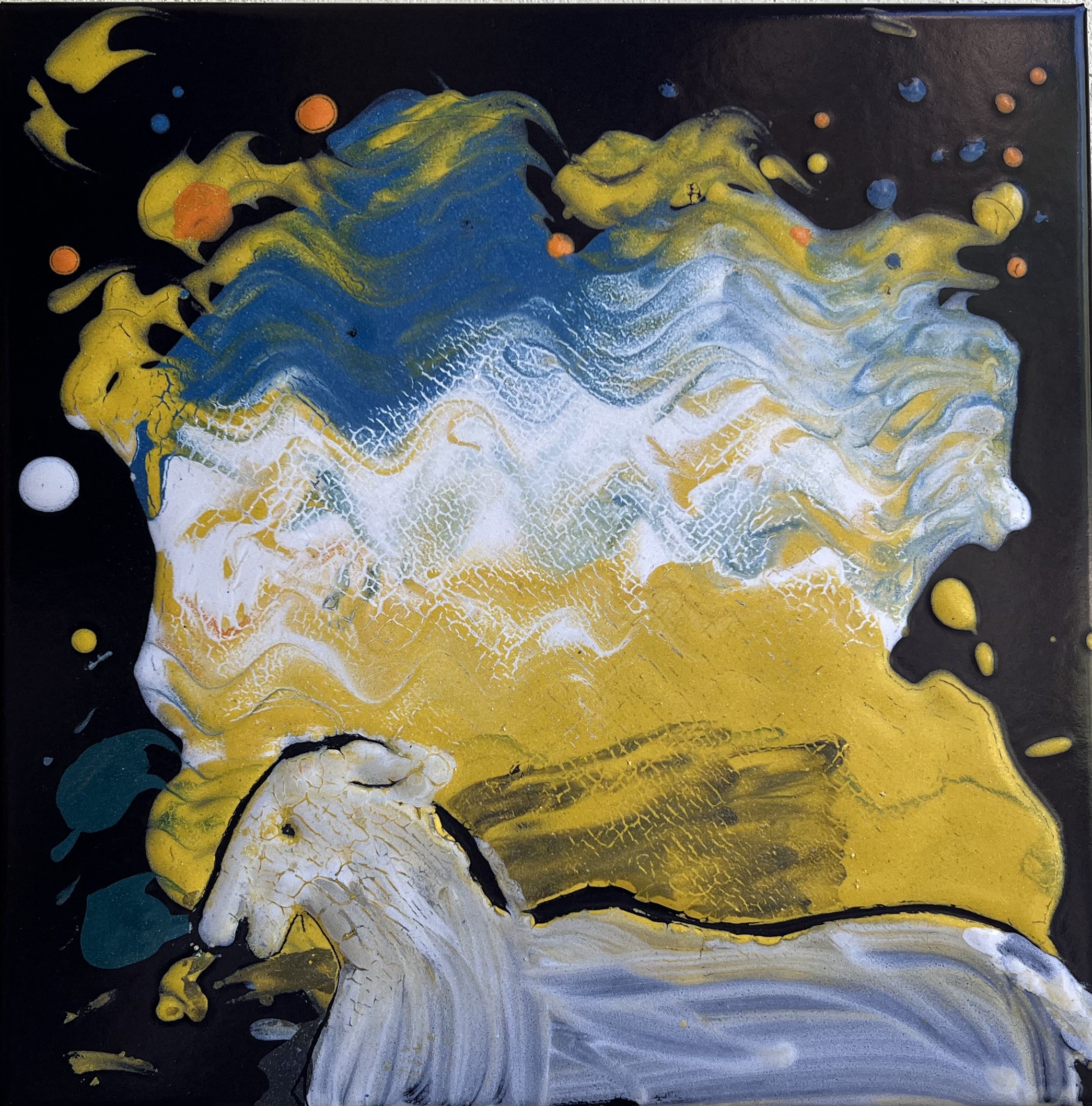 Obraz „Ovečka“ ze smaltu výtvarnice Danily Kosové.