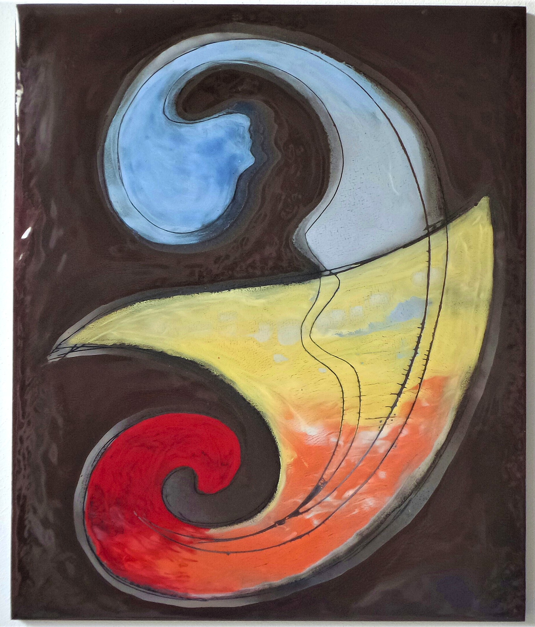Obraz „Probuzení“ ze smaltu výtvarnice Magdy Jochcové.