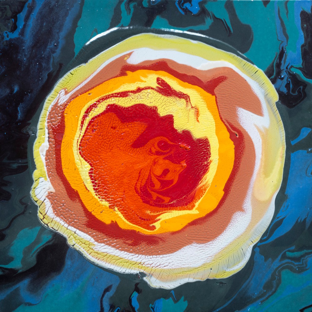 Obraz „Zárodek planety“ ze smaltu výtvarnice Markéty Škopkové.