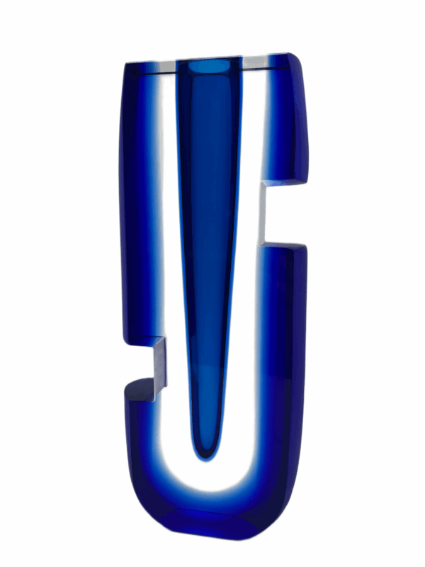 Ručně foukaná broušená skleněná váza z hutního skla „Kubismus“.