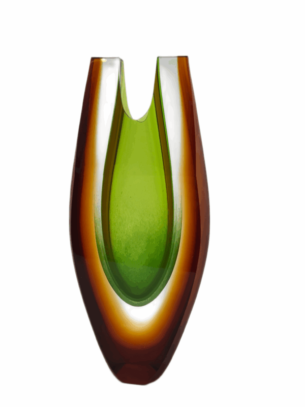 Přední a zadní strana vázy je broušena do vysokého lesku, aby mohly vyniknout jednotlivé odstíny barevného skla a čirého křišťálu.
