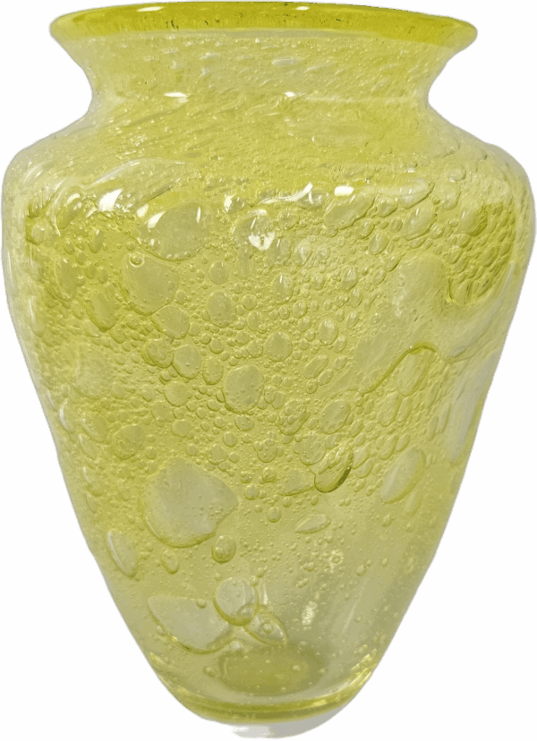 Objevte majestátní ručně foukanou a tvarovanou skleněnou vázu z hutního skla od Jiřího Pačinka mladšího.